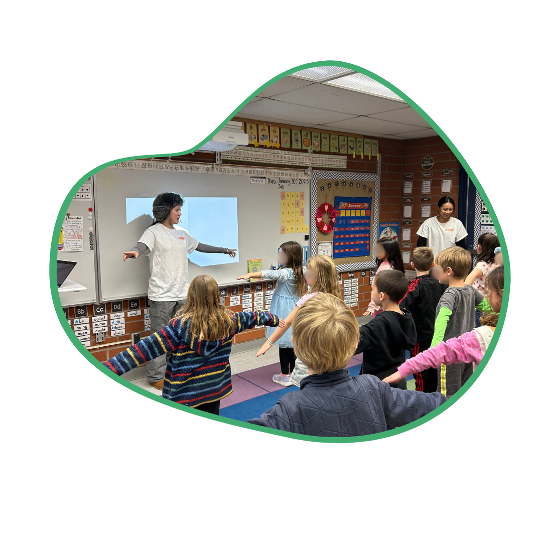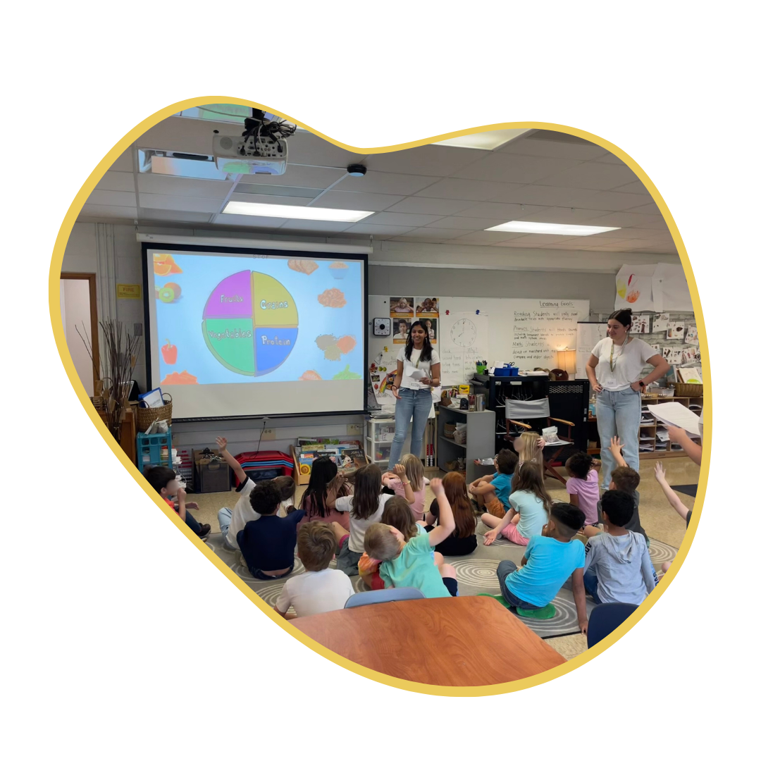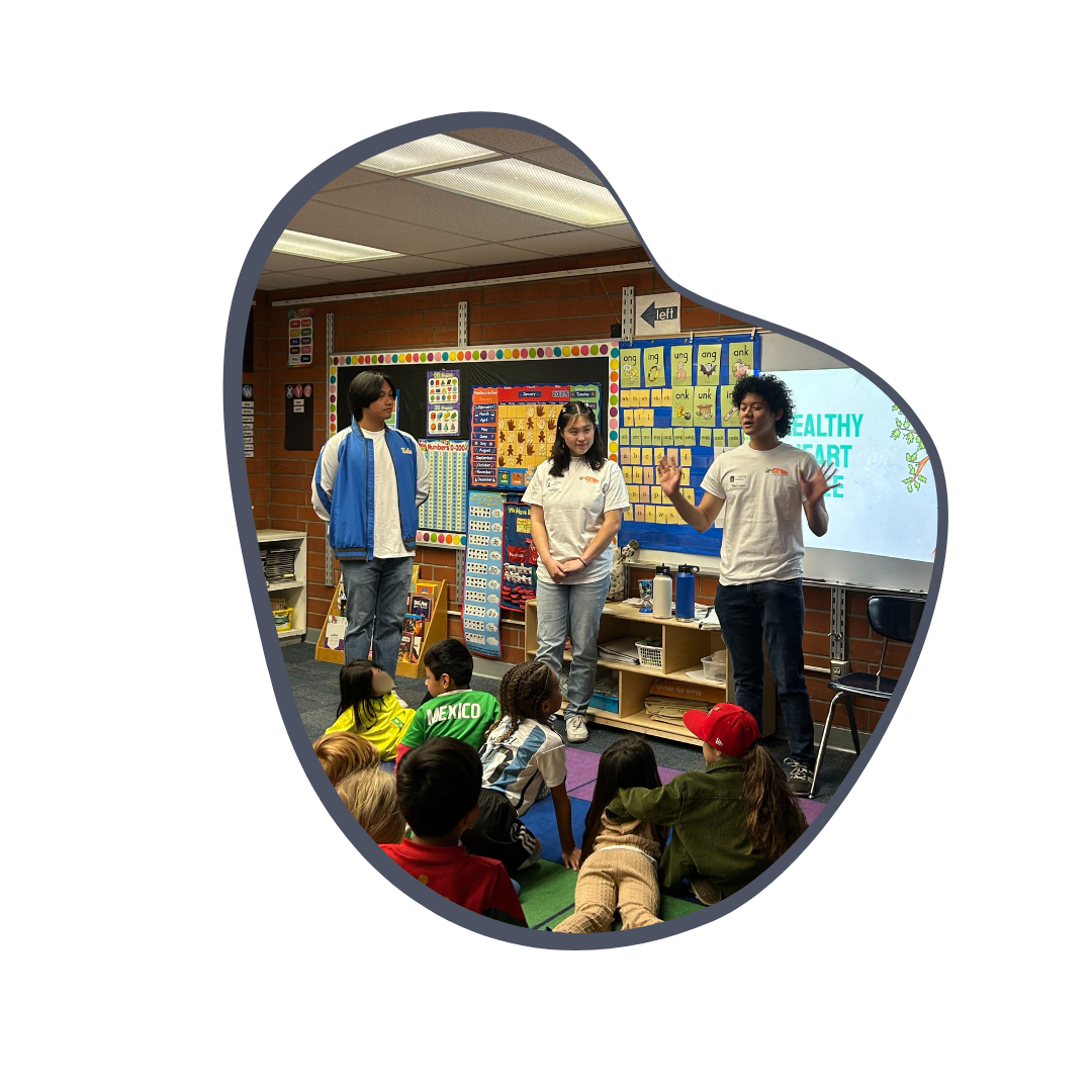 Led by youth, for youth, KIN’s peer-to-peer model connects college volunteers with elementary classrooms to deliver evidence-based lessons on nutrition and life skills. Over several weeks, college KINstructors build meaningful relationships with students as they explore how food links to health, the environment, and cultural identity. The curriculum emphasizes curiosity, mindfulness, and self-awareness, fostering joy and confidence in making sustainable choices beyond the classroom. The model is simple yet powerful: our peer-led education makes learning relevant, inclusive, and inspiring.